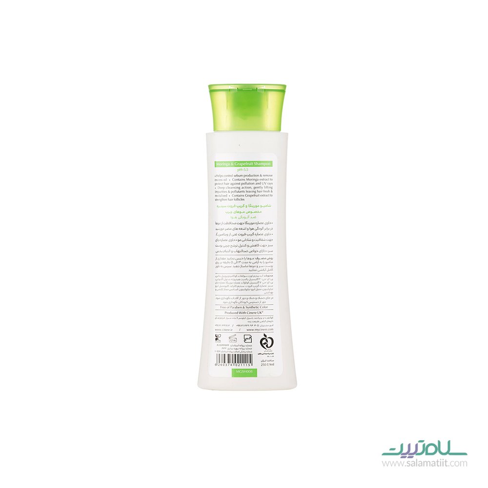 شامپو حاوی مورینگا و گریپ فروت مناسب موهای چرب سینره CINERE